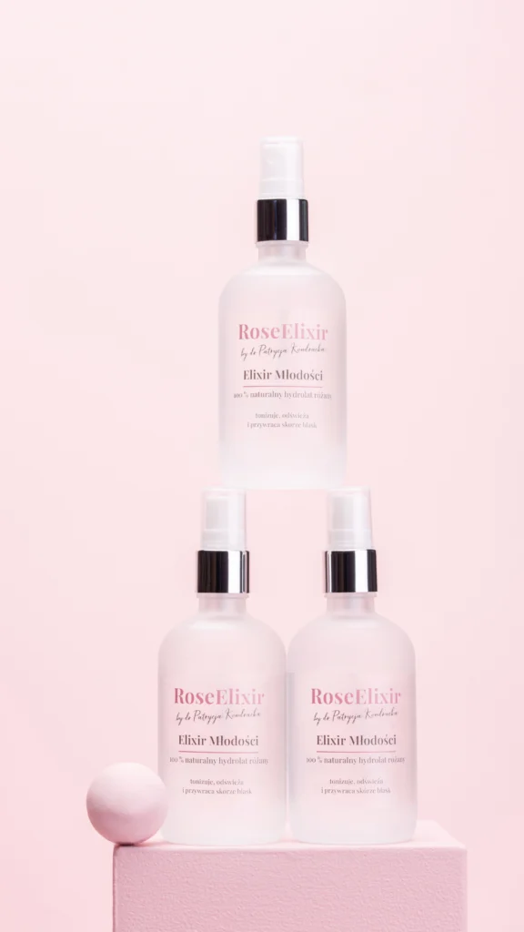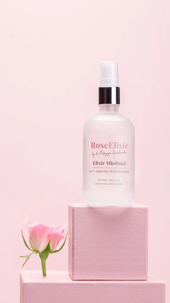 RoseElixir to wyłącznie czysta woda komórkowa róży, naturalny produkt destylacji, zawierający bioaktywne cząsteczki roślinne o realnym działaniu pielęgnacyjnym.